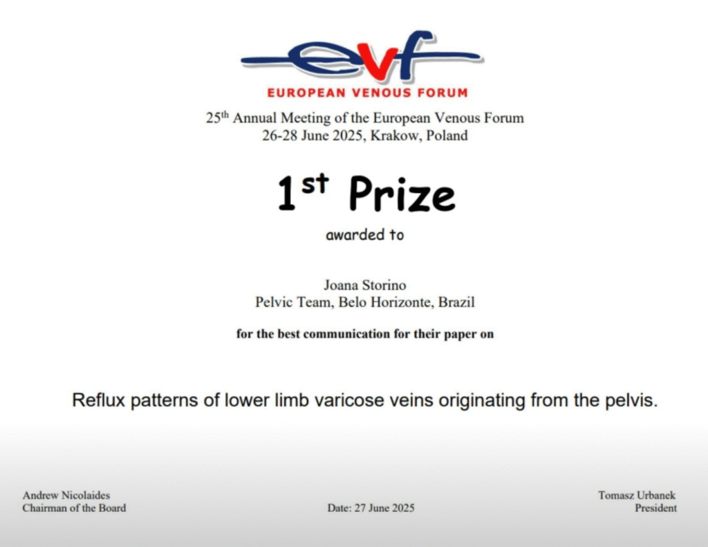 Ao lado de outras profissionais que desejavam criar uma comunidade dedicada ao estudo e conscientização da dor pélvica crônica de origem venosa, demonstrando seu compromisso com a pesquisa, ensino e o avanço no tratamento dessa condição.